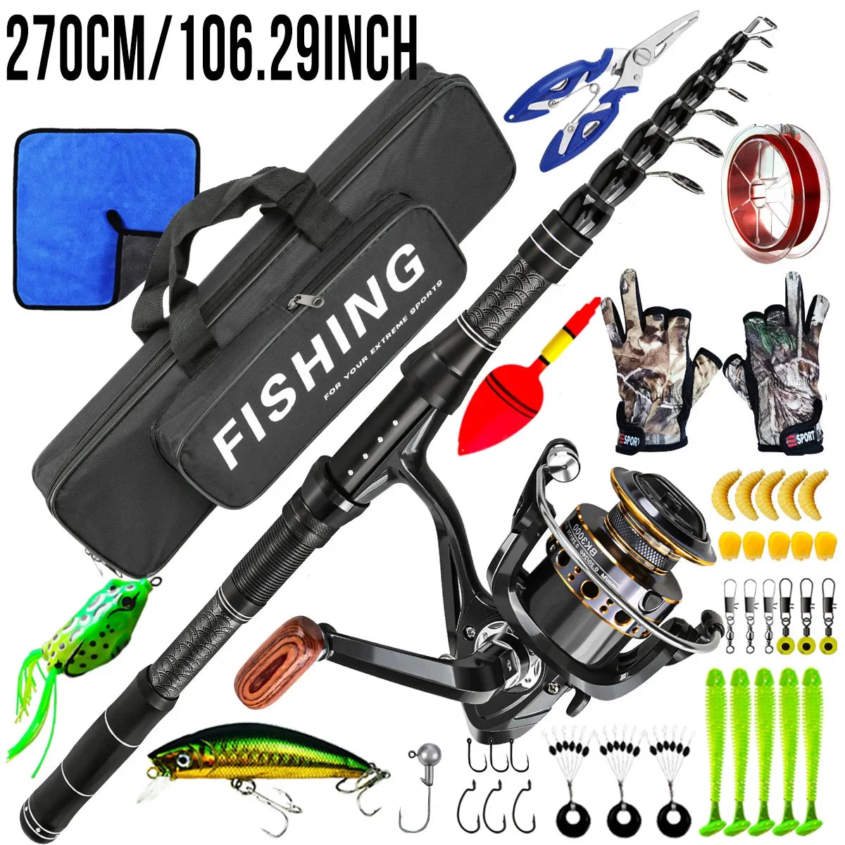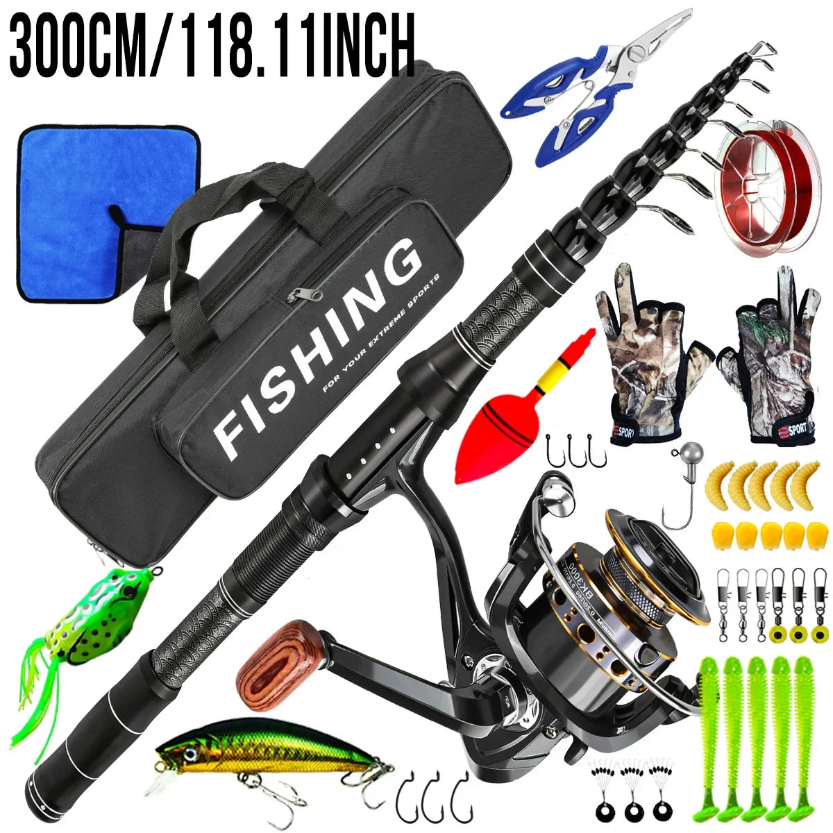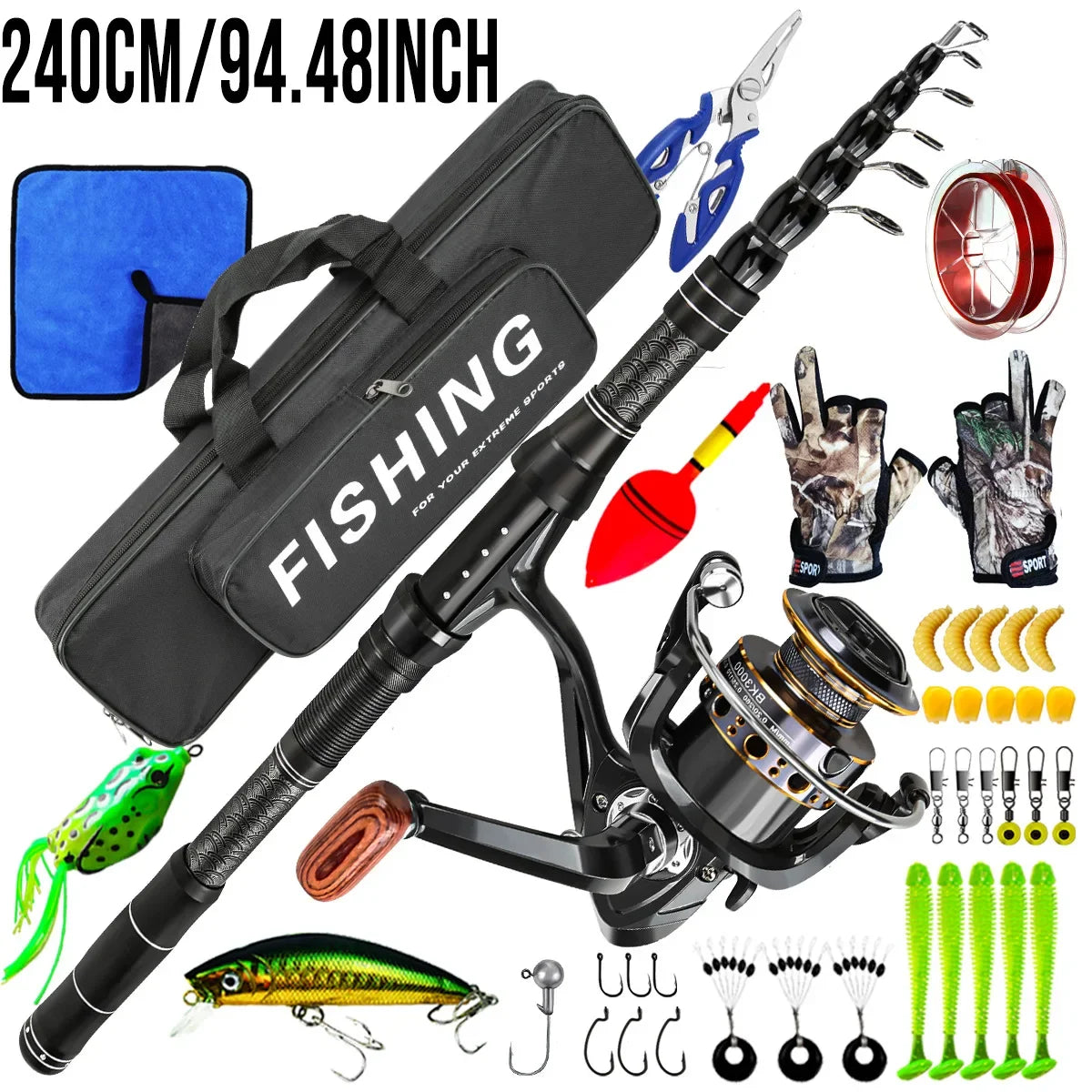 This surf fishing combo kit eliminates the need to buy separate components. Perfect for beginners and seasoned anglers alike, it delivers everything required for saltwater and freshwater fishing. The carbon rod offers power and flexibility, while the included reel ensures smooth operation. With added artificial baits, you’re ready to target bass, pike, and other gamefish immediately.