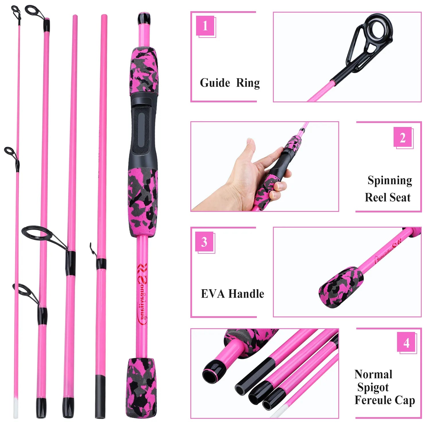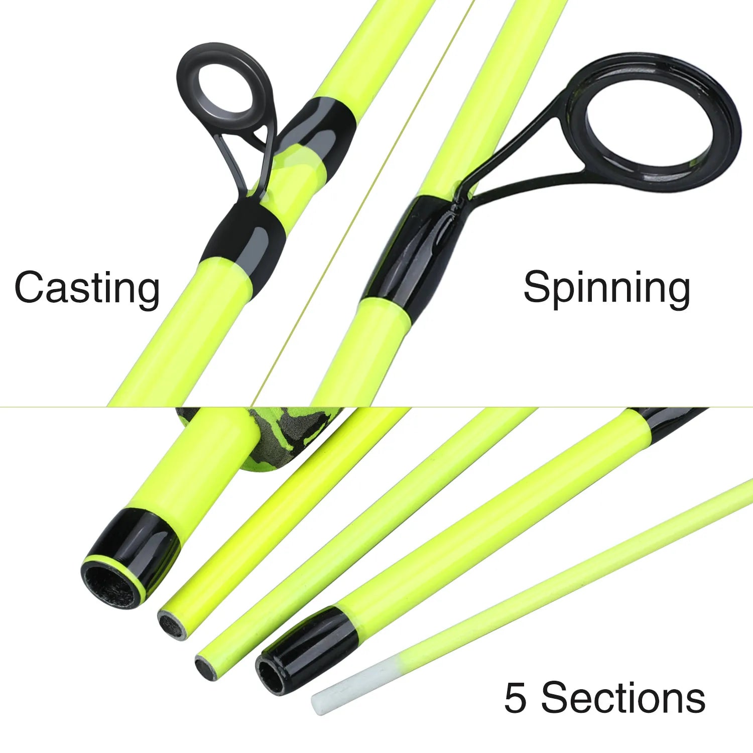 Take your fishing anywhere with this 5-section ultralight carbon fiber rod. Designed for both spinning and casting setups, this rod combines strength, portability, and performance, making it an ideal companion for anglers who love fishing in lakes, rivers, streams, and ponds.